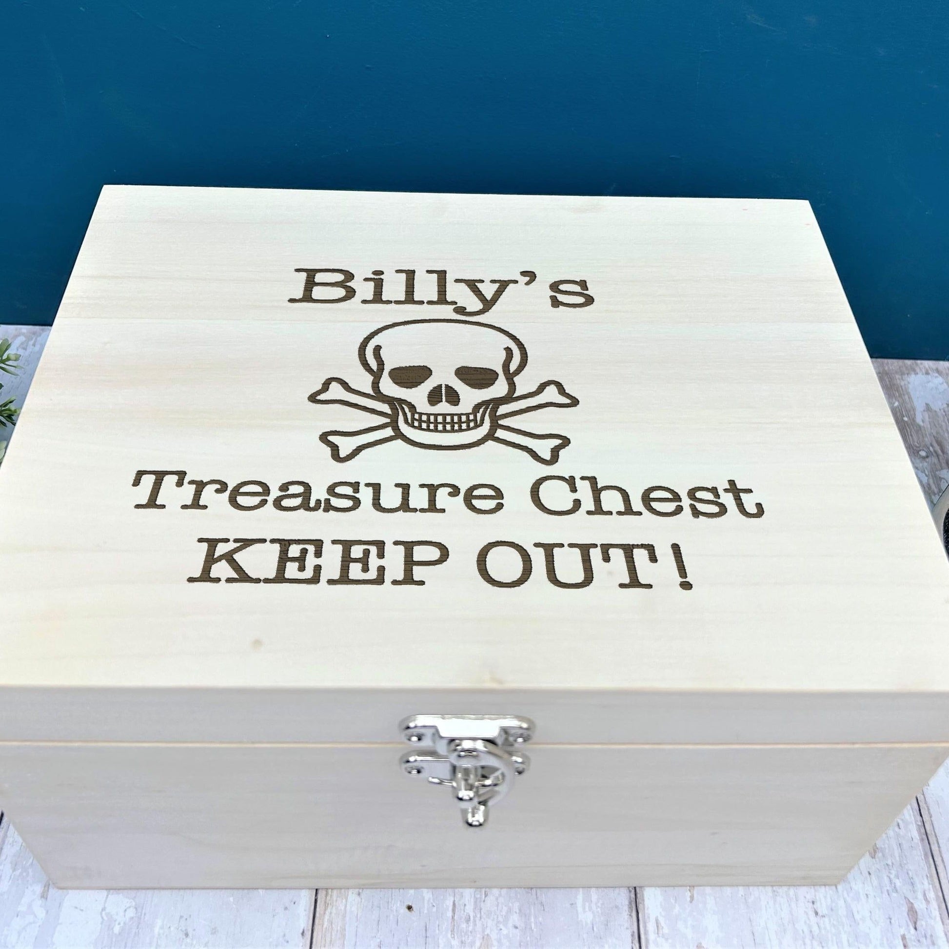 Personalised Pirate Treasure Box Skull & Crossbones Wooden Toy Storage - Keepsake Box
