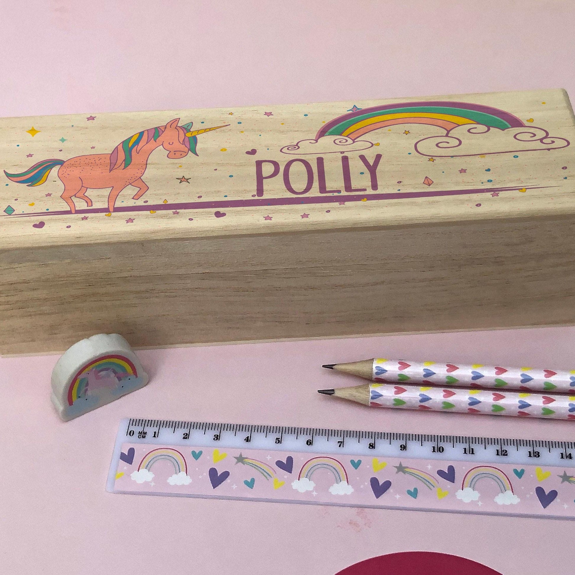 Unicorn Printed Personalised Wooden Pencil Case Box - Pencil Case School Stationery Birthday Gift